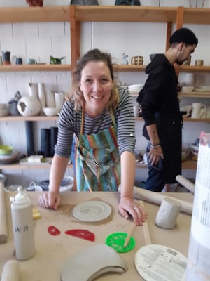 Atelier avec notre potière Marisa, les participant-e-s ont pu travailler la terre selon leur envie