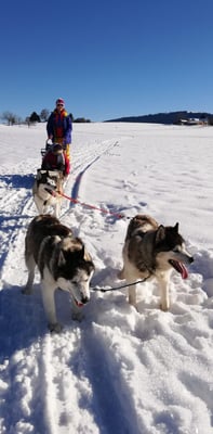 Avec les chiens de traîneau d'Angélique et Véronique, merci pour votre accueil et cette super expérience!