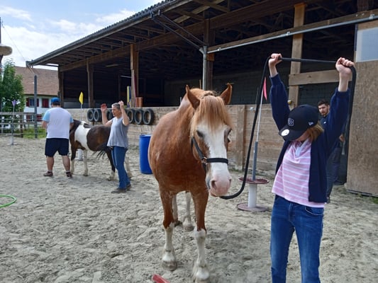 Une superbe journée au centre équestre, où chacun a pu expérimenter son rapport aux chevaux! Bravo.
